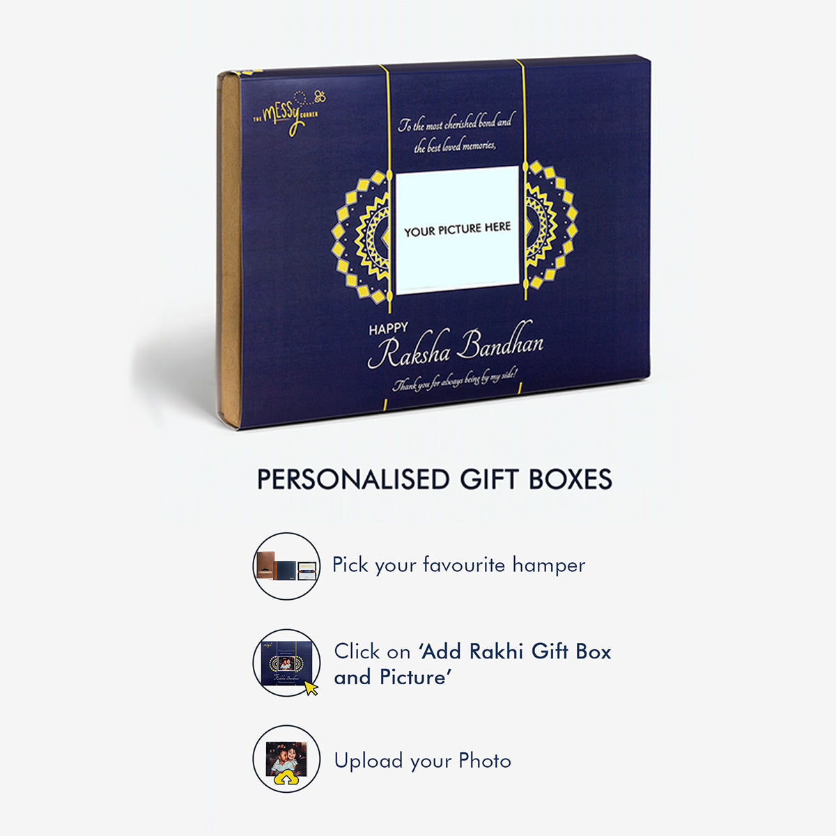 Take your Rakhi Gifts up a notch with custom gifts boxes and share beautiful memories with a picture.