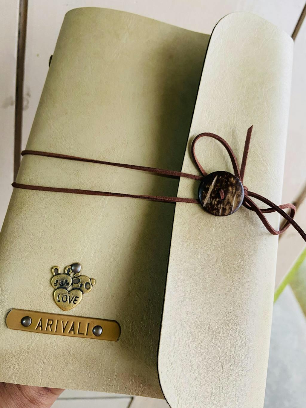 Personalised Button Diary - Brown