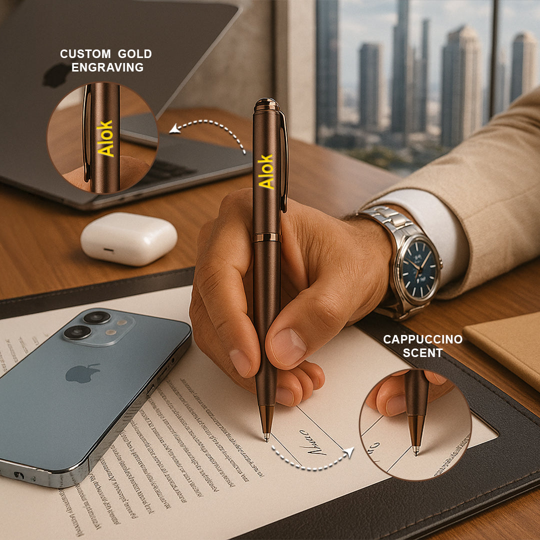 What's in the Cappuccino Personalised Pen | Coffee Pen in Brown?
