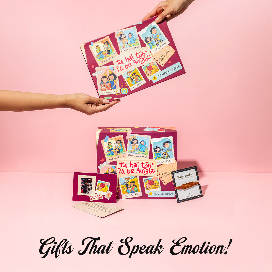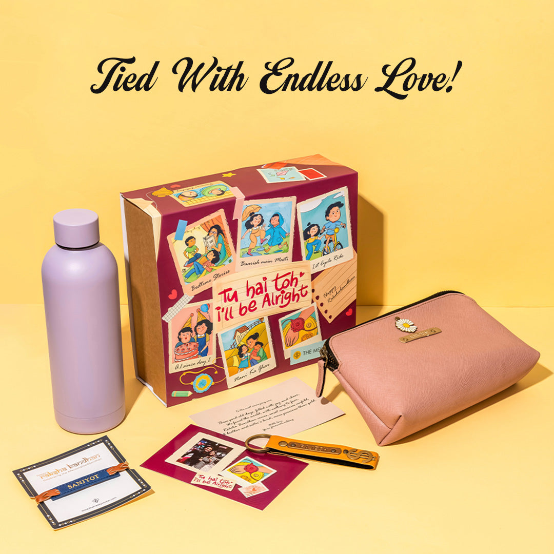Packed with love and handpicked for the coolest "BRO", the box includes a bold black cap, a sleek custom thermos, and a premium eyewear case engraved with his name. Topped off with a beautiful packahing – “Tu hai toh I’ll be alright”, this hamper makes sure your love is felt loud and clear.