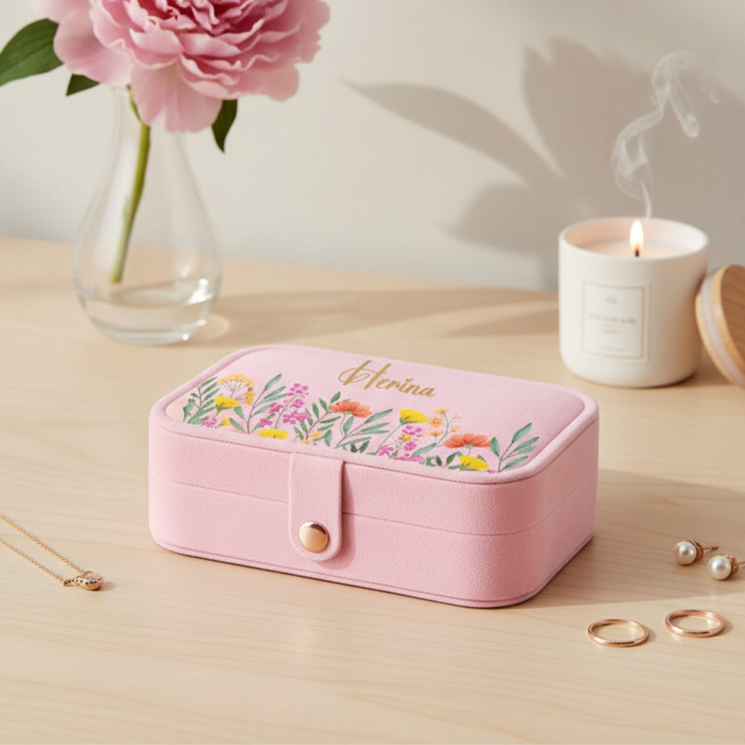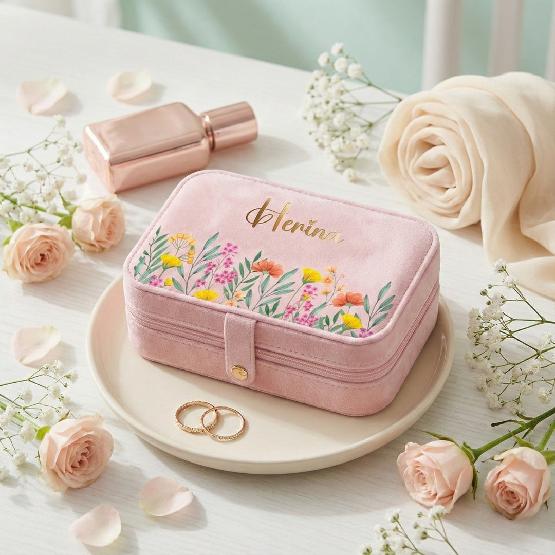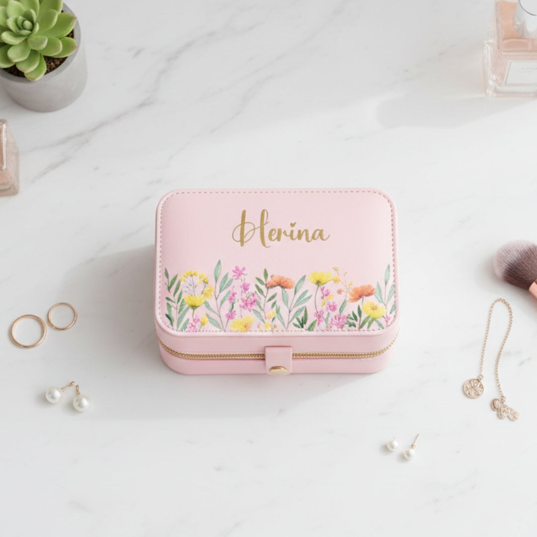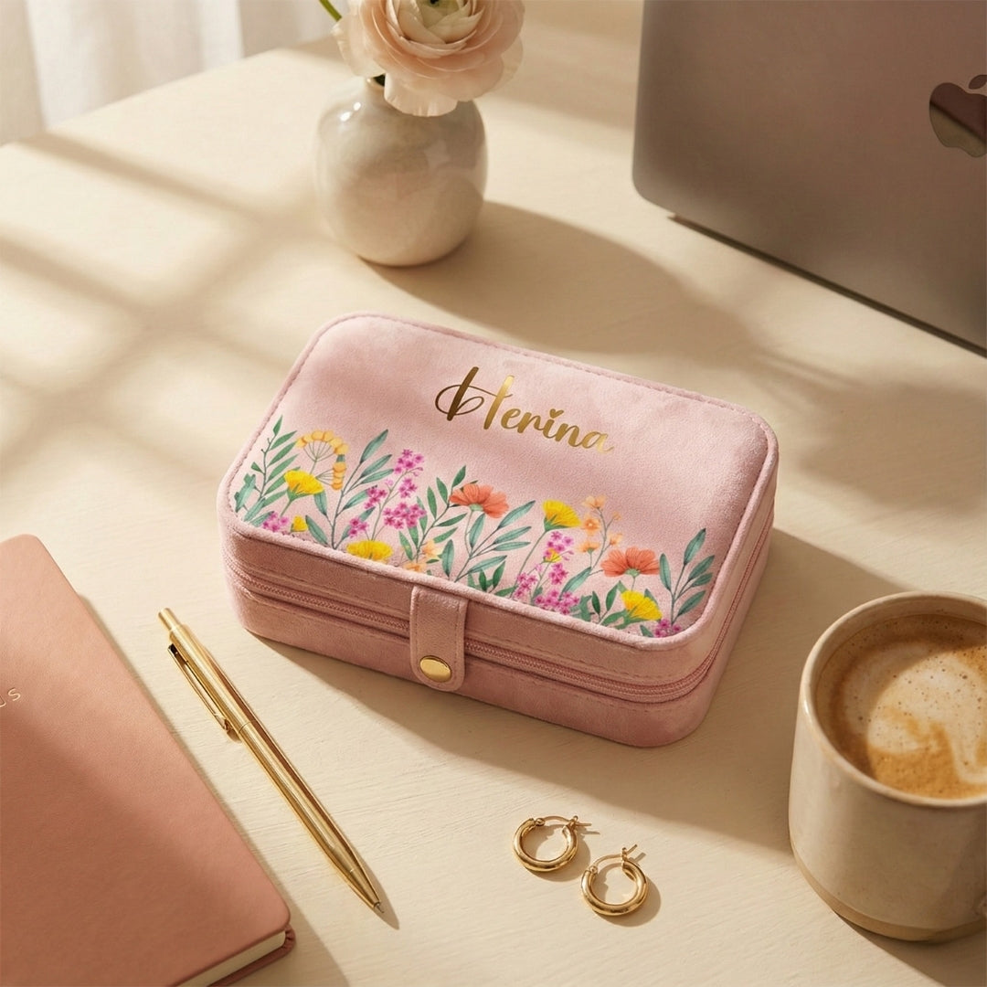 Floral Personalised Travel Jewellery Organizer