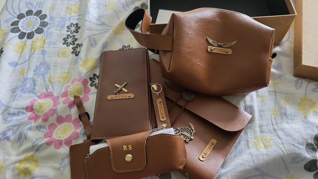 Consists: Diary, Eyewear case, Travel Wallet, Luggage tag, Pouch & Keychain