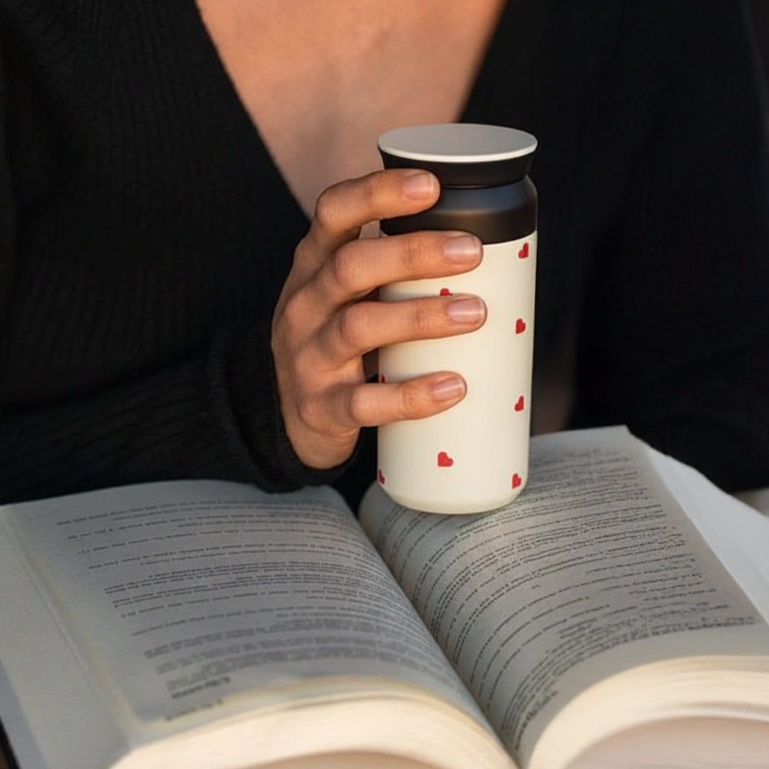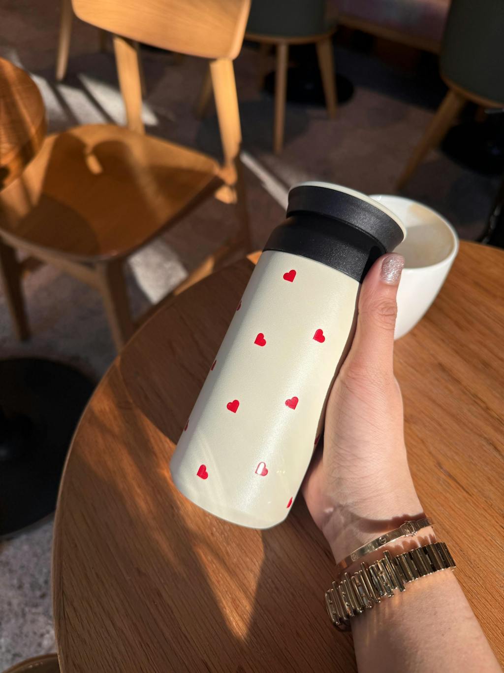 The first thing you'll notice about this tumbler is its delightful All Hearts design. The ivory background, adorned with tiny hearts, makes it a sweet and stylish accessory. It's a perfect fit for coffee lovers who appreciate a blend of elegance and fun. Imagine sipping your favorite brew from a tumbler that reflects your love for coffee and all things cute!