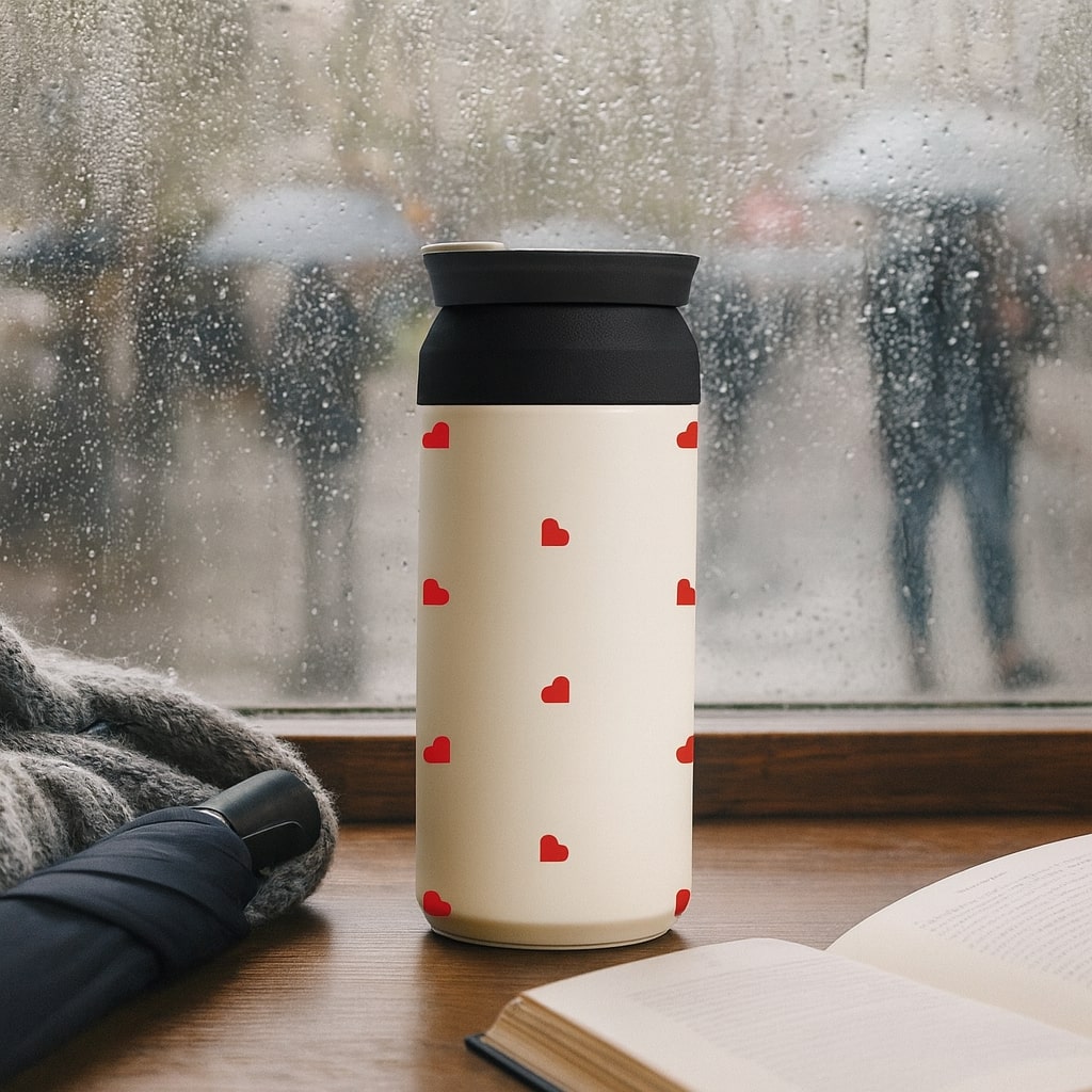 Sip in Style with the Personalised Insulated Coffee Tumbler - All Hearts (Ivory)