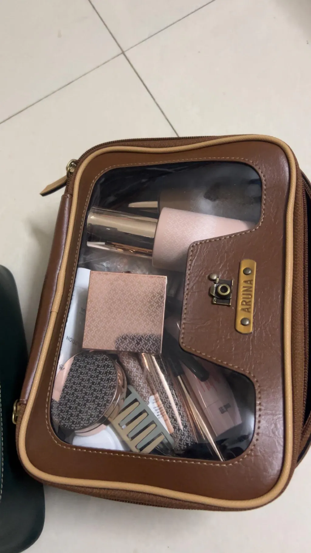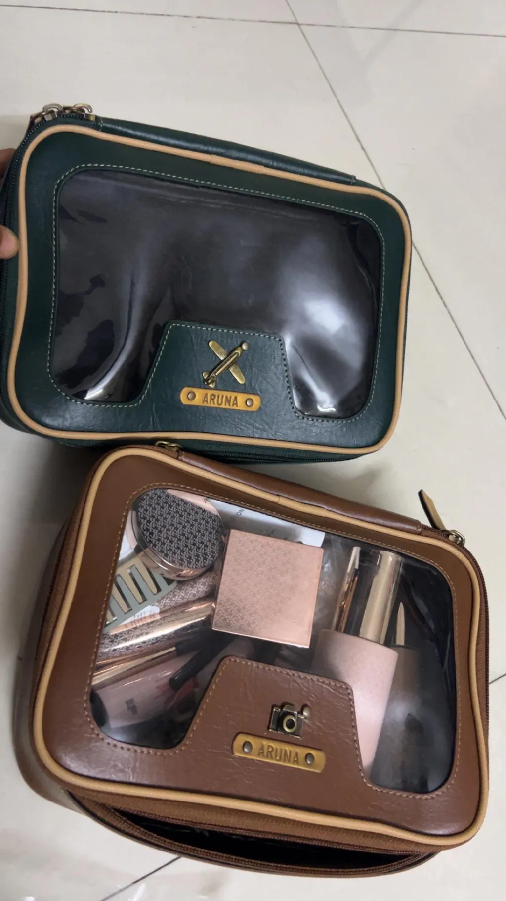 Crafted in rich, premium vegan leather with a clear front panel, it lets you instantly view your makeup, skincare, and accessories. No more rummaging or repacking, everything stays beautifully arranged and easy to find.