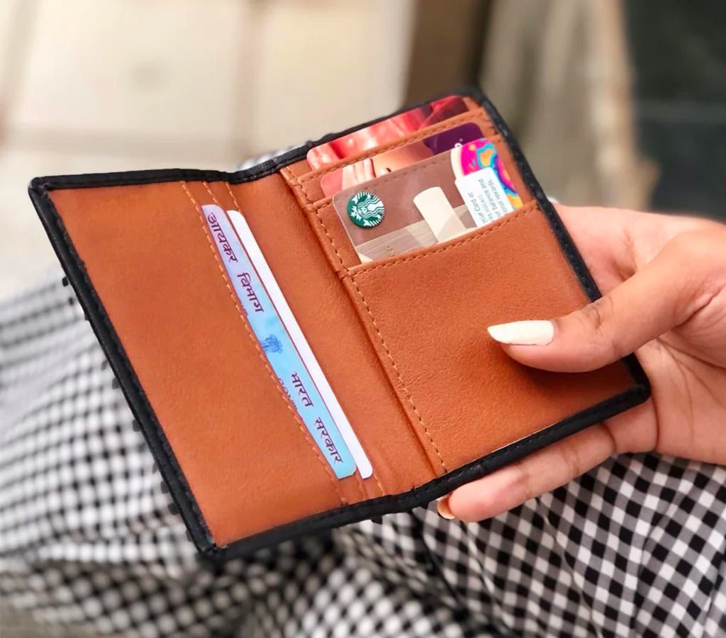 - Fits: 6-10 cards, and 1-2 neatly folded bills or receipts