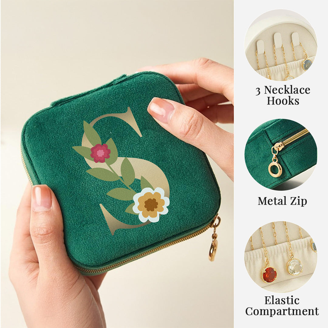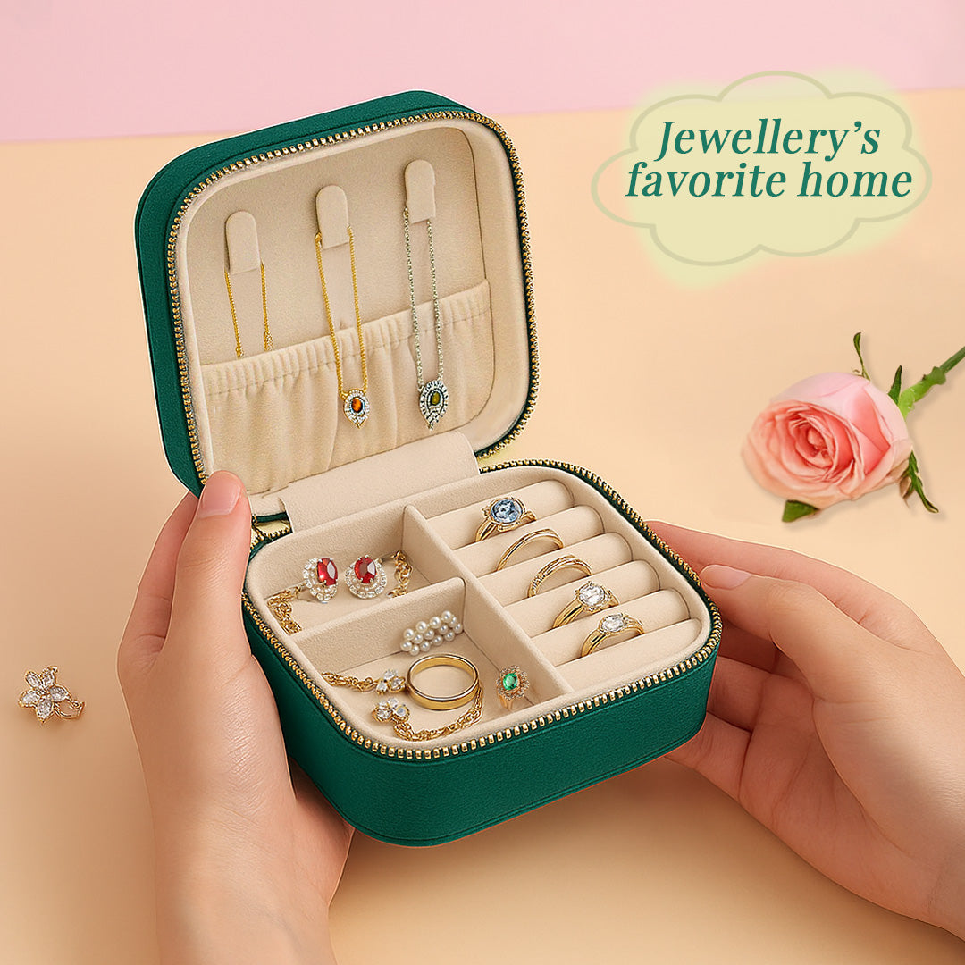 Velvet Travel Jewellery Box | Compact & Stylish Organizer - Emerald Green