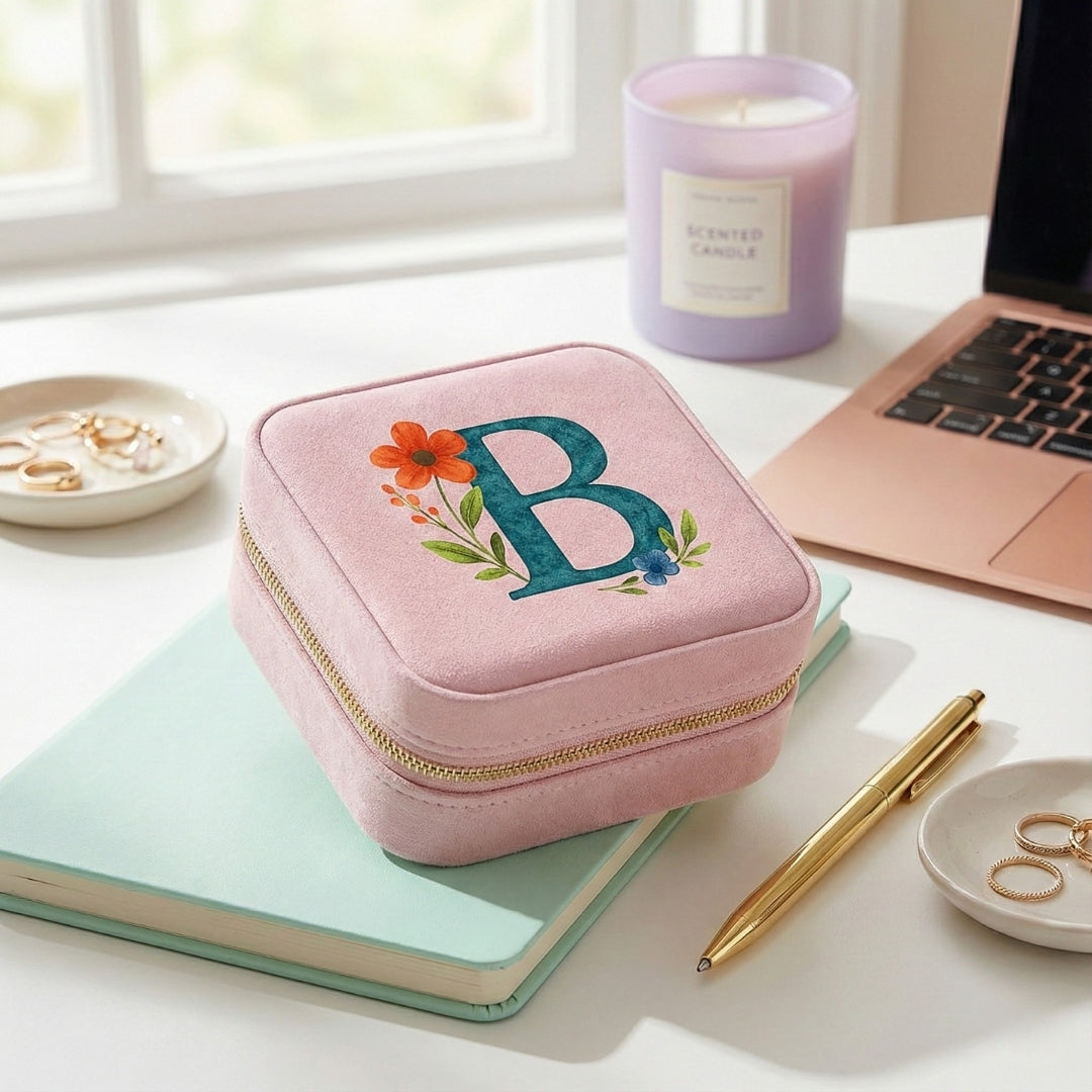 Floral Monogram Jewellery Travel Box