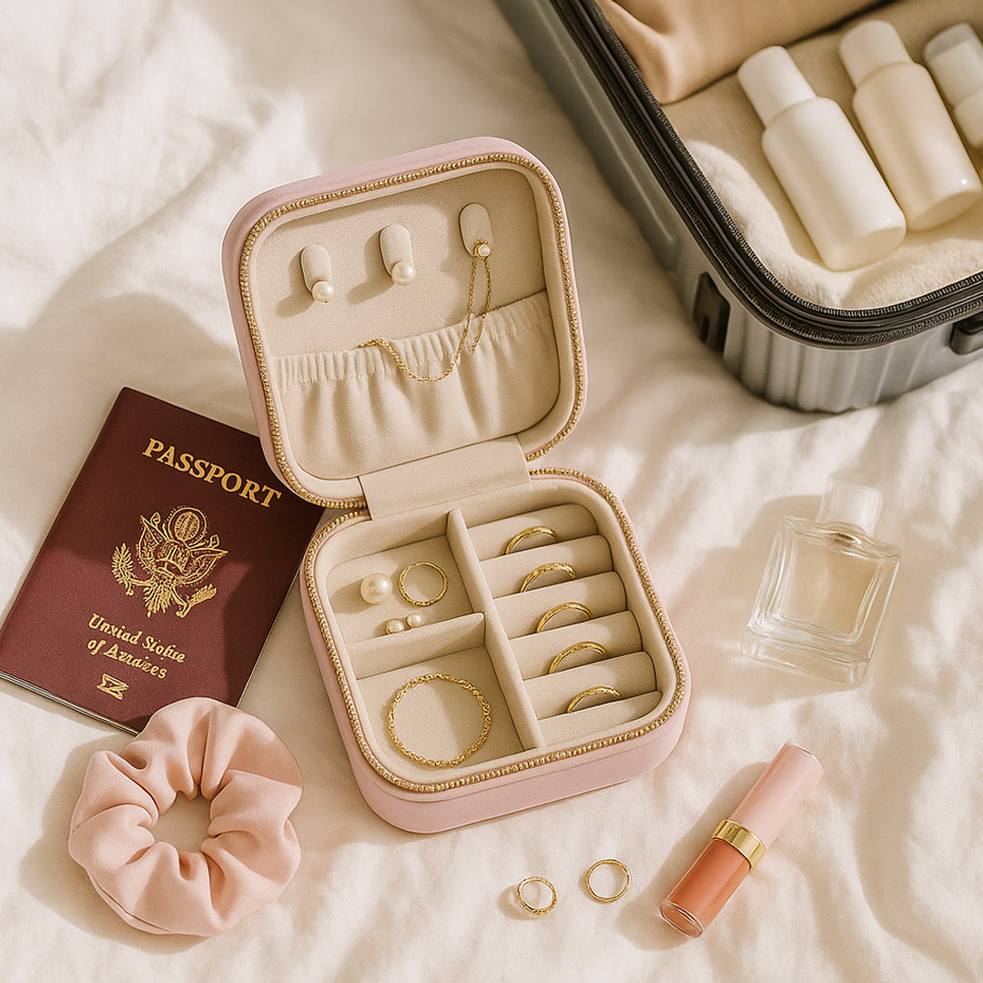 Velvet Travel Jewellery Box | Compact & Stylish Organizer - Powder Pink