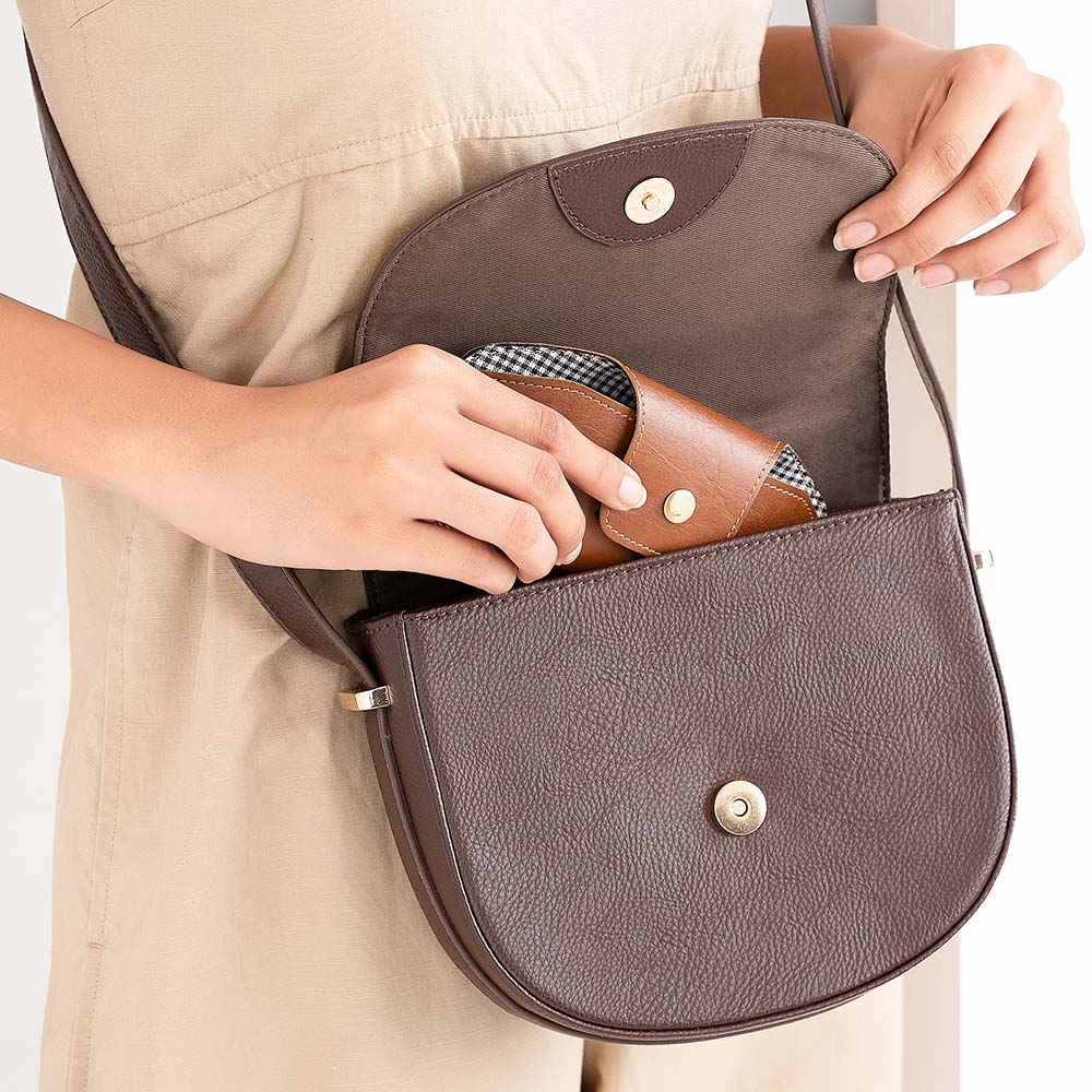 Verve Crossbody comes in 4 captivating colors: black, brown, beige, and wine. Choose your statement shade and make heads turn wherever you go!